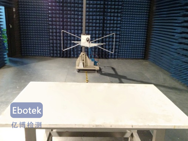a)30MHz-1GHz電場輻射:在半電波暗室中進(jìn)行,EUT隨轉(zhuǎn)臺(tái)360度轉(zhuǎn)動(dòng),天線在1-4m高度