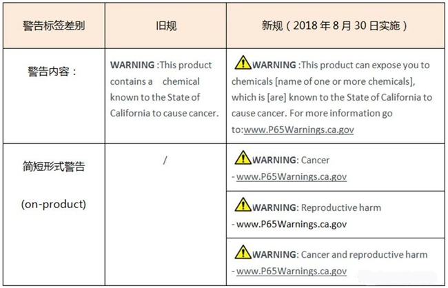 各種情況都需要警告標簽,包括環(huán)境暴露,消費者暴露及工作場所暴露。通過互聯網向加州客戶銷售的產品也需要警告。