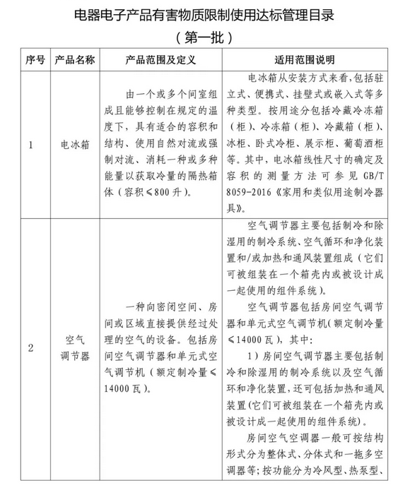 電器電子產(chǎn)品有害物質(zhì)限制使用達(dá)標(biāo)管理目錄(第一批)