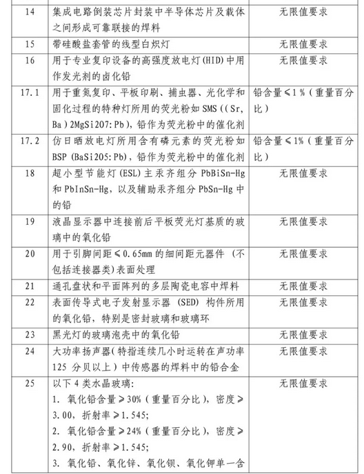 為貫徹落實(shí)《電器電子產(chǎn)品有害物質(zhì)限制使用管理辦法》,2018年3月15日中華人民共和國(guó)工業(yè)和信息化部發(fā)布了《電器電子產(chǎn)品有害物質(zhì)限制使用達(dá)標(biāo)管理目錄(第一批)》和《達(dá)標(biāo)管理目錄限用物質(zhì)應(yīng)用例外清單》,并將于2019年3月15日正式施行。納入目錄的產(chǎn)品,鉛、汞、鎘、六價(jià)鉻、多溴聯(lián)苯和多溴二苯醚的含量應(yīng)該符合電器電子產(chǎn)品有害物質(zhì)限制使用限量要求等相關(guān)標(biāo)準(zhǔn),并納入電器電子產(chǎn)品有害物質(zhì)限制使用合格評(píng)定制度管理范圍。列入《達(dá)標(biāo)管理目錄限用物質(zhì)應(yīng)用例外清單》的可暫不按本要求執(zhí)行。