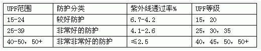 表3UPF的數(shù)值及防護(hù)等級[3]