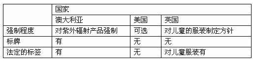 表2 澳大利亞、美國和英國對抗紫外線JZ產(chǎn)品的強(qiáng)制要求和程度