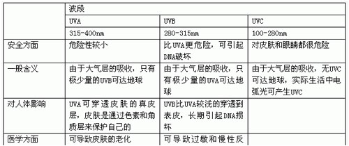 表1 紫外線及對人體的影響