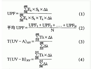 UPF、 T(UV-A)AV、T(UV-B)AV的計(jì)算如式(1)~(4)。
