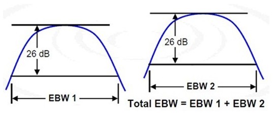 (2) 如果這兩個(gè)非相鄰信號(hào)沒有重疊在一起,那么26 dB的EBW是兩個(gè)非相鄰信號(hào)各個(gè)26dB EBW之和。
