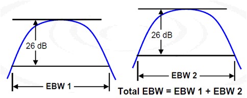 (2) 如果這兩個(gè)非相鄰信號(hào)沒(méi)有重疊在一起,那么26 dB的EBW是兩個(gè)非相鄰信號(hào)各個(gè)26dB EBW之和。