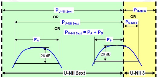 (3) 如果有一個(gè)信號(hào)跨越兩個(gè)UNII的頻帶,這時(shí)必須以被跨越的頻率做分隔,來(lái)判斷在不同UNII頻段的26dB EBW。